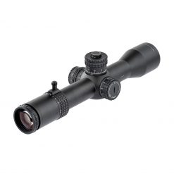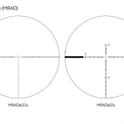Einzigartiges echtes Mehrbereichs-MRAD-Absehen. Der 69 MRAD Kreis ermöglicht schnelles Schießen auf kurze Distanz. 11 MRAD Weihnachtsbaum mit stadiametrischem Entfernungsmesser. Hauptmarkierungen alle 0,5 MRAD, im Weihnachtsbaum alle 1 MRAD.