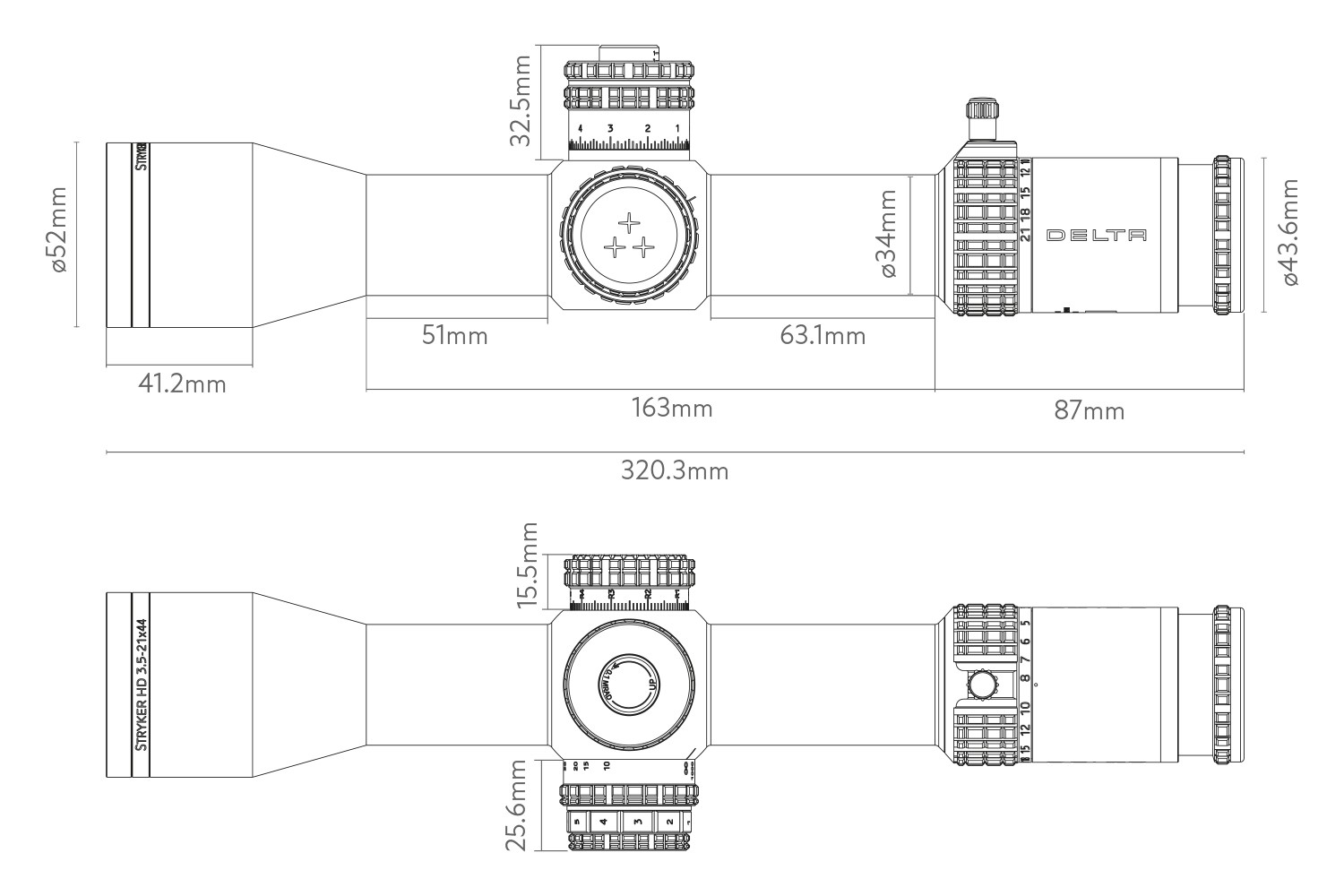 Klickverstellung: 0,1 MRAD